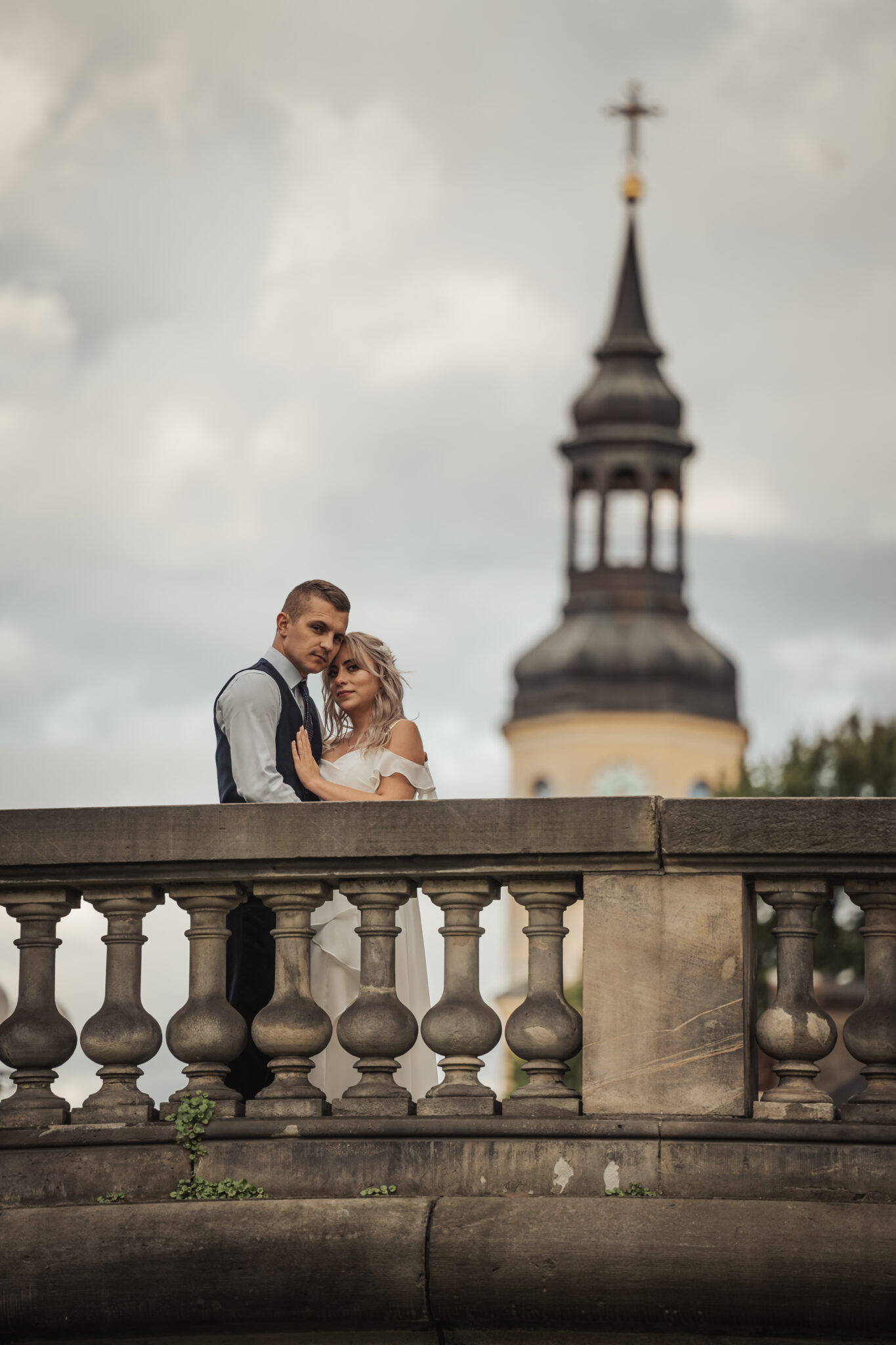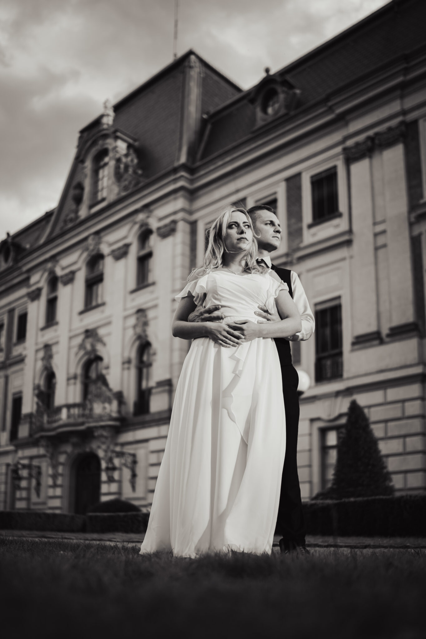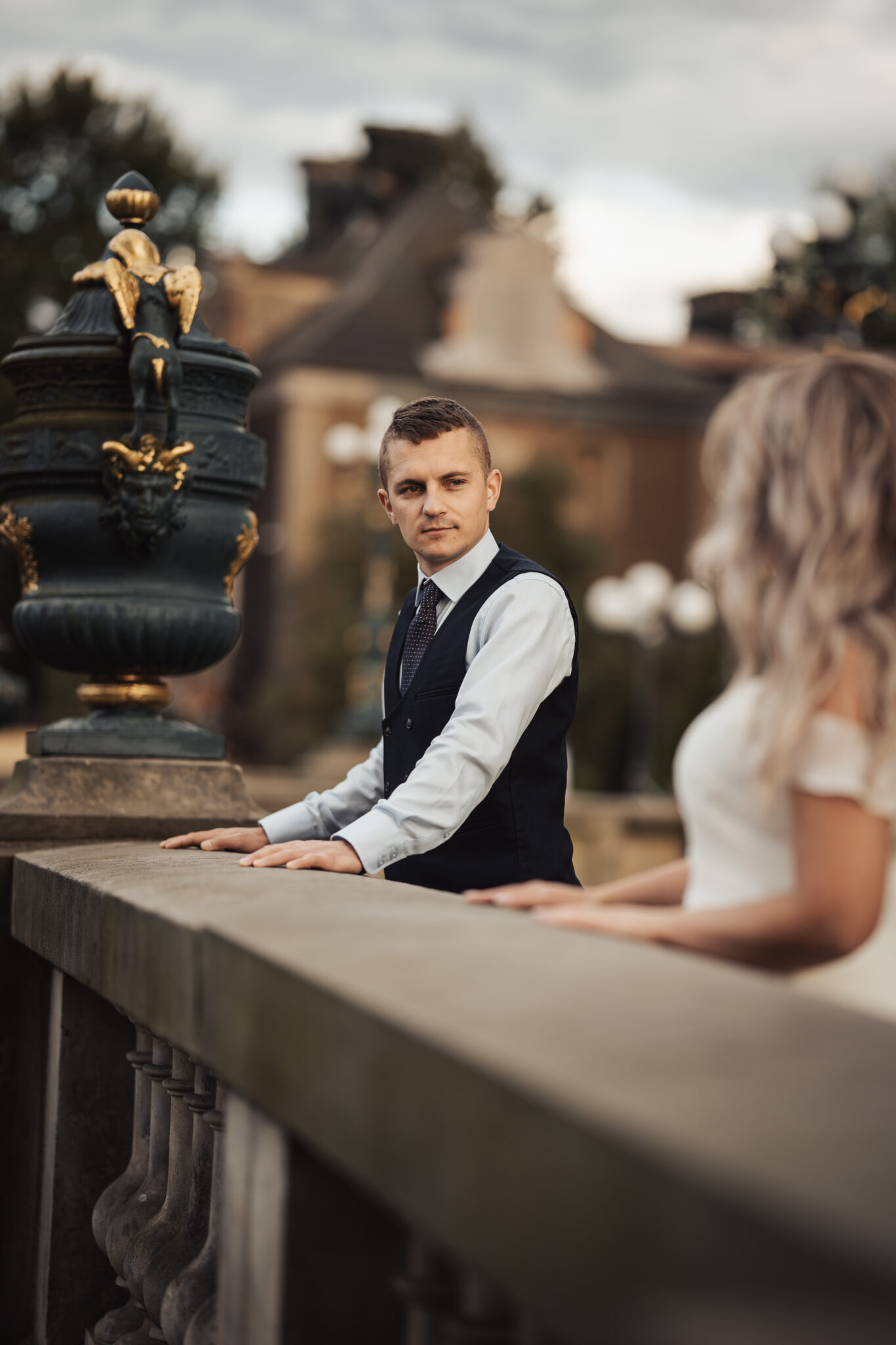 Sesja plenerowa Aniki i Konrada w Parku w Pszczynie była jak kadry z romantycznego filmu. Przed majestatycznym pałacem stworzyliśmy ujęcia pełne elegancji, spokoju i subtelnych emocji. To miejsce – otoczone zielenią, alejkami i historyczną architekturą – idealnie podkreśliło ich naturalną bliskość.