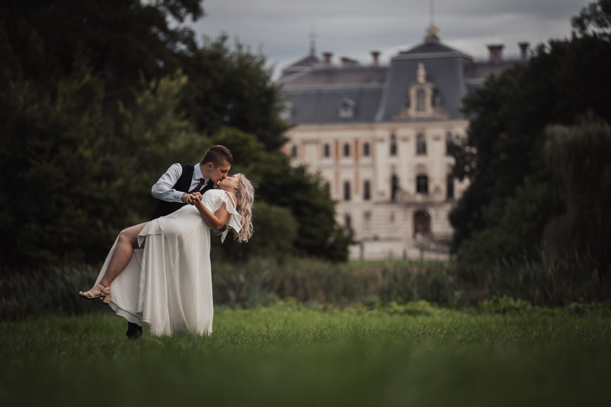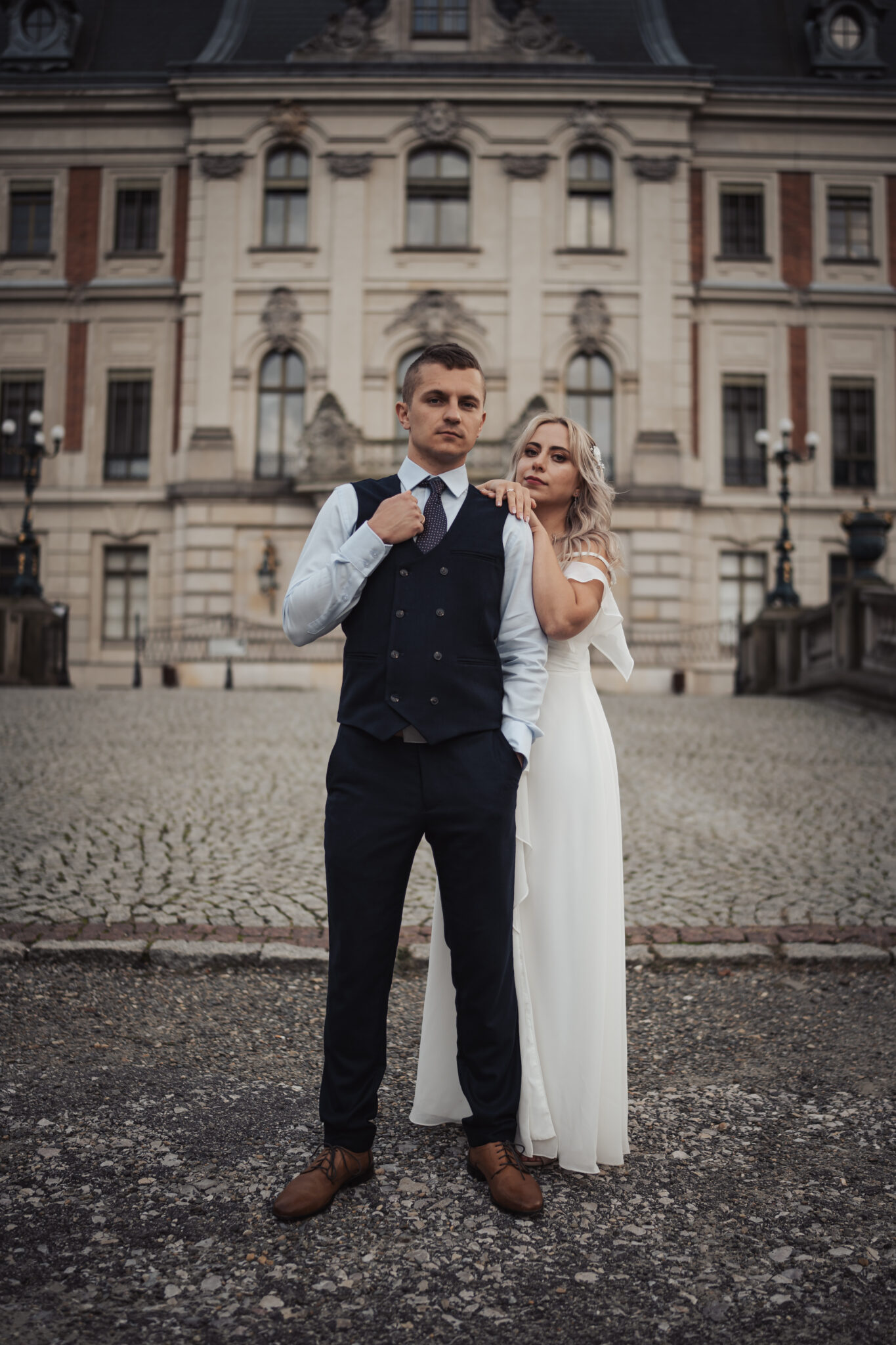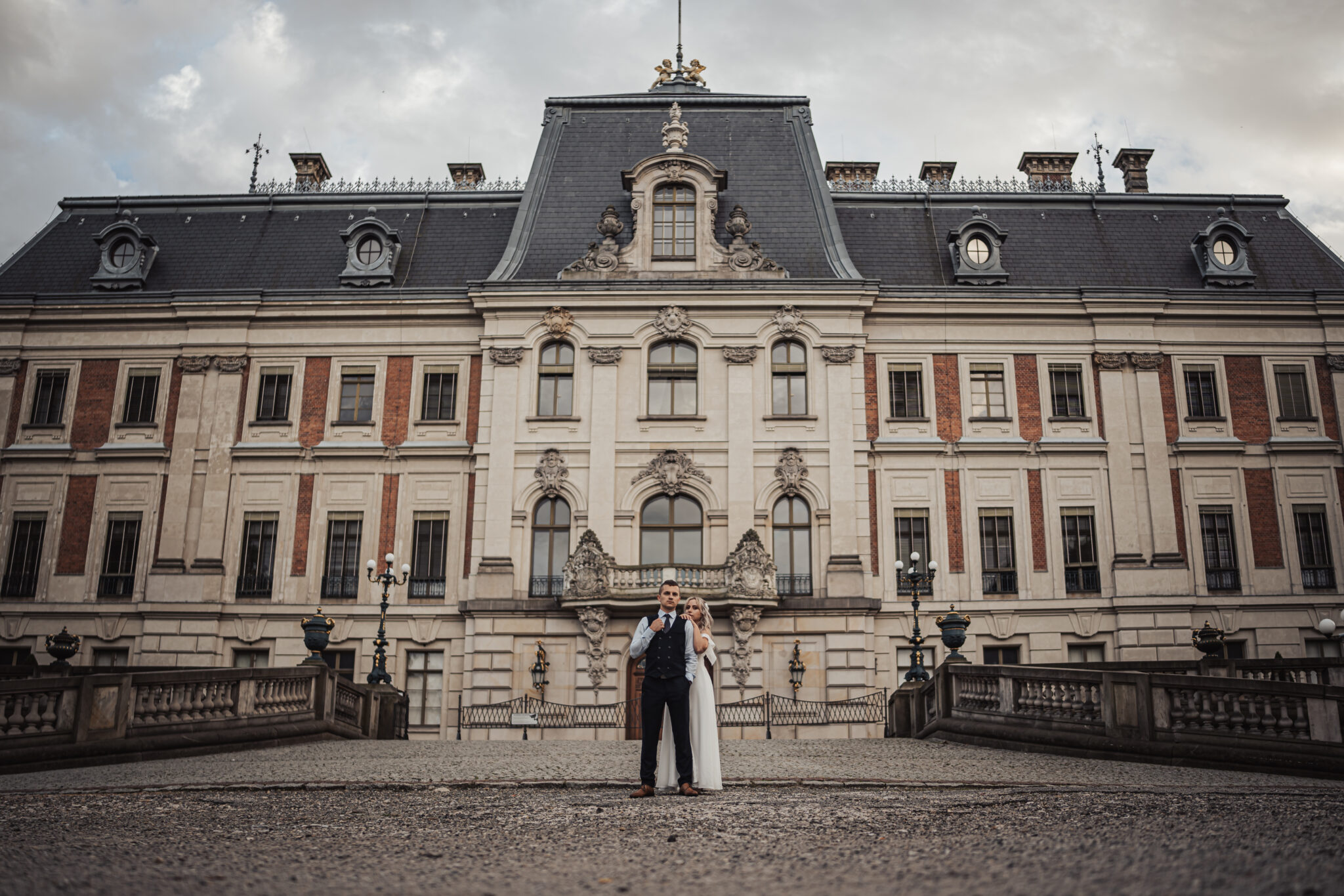 Sesja plenerowa Aniki i Konrada w Parku w Pszczynie była jak kadry z romantycznego filmu. Przed majestatycznym pałacem stworzyliśmy ujęcia pełne elegancji, spokoju i subtelnych emocji. To miejsce – otoczone zielenią, alejkami i historyczną architekturą – idealnie podkreśliło ich naturalną bliskość.