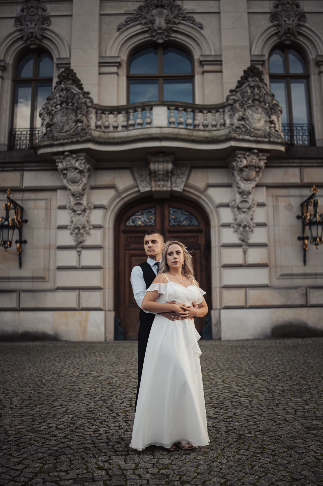 Każdy moment, od spokojnych spacerów po parkowych ścieżkach, aż po pełne czułości spojrzenia przed fasadą pałacu, tworzył wyjątkową historię, którą z dumą mogłem uchwycić. Mam nadzieję, że te zdjęcia oddadzą choć część magii tego dnia i piękno Waszej relacji. ✨